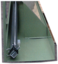Tukeva metallirunko, varustettuna luodinkerääjäkourulla, maalattu harmaanvihreällä mattavärillä