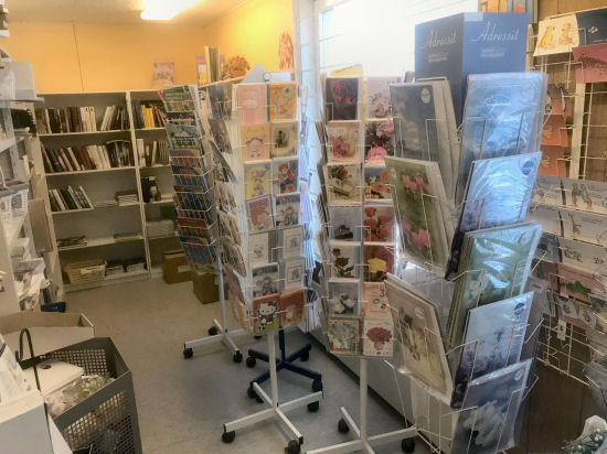 Lisäksi kirjakauppa- ja lahjatavarat.